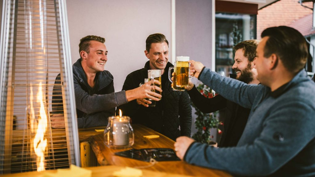 In unserer teilverglasten Lounge genießen Sie draußen echte Wohnzimmer-Atmosphäre. In dem überdachten und in der kalten Jahreszeit beheizten und wohl schönsten Eckchen des Hauses verbringen Sie in unseren gemütlichen Lounge-Sesseln oder rund um die rustikale Holztheke herrliche Abende bei köstlichem Essen und kühlem Bier. Natürlich dürfen Sie auch gerne in unseren geräumigen Schaukelstühlen der Nachtigall lauschen und dabei ein gutes Glas Wein genießen.